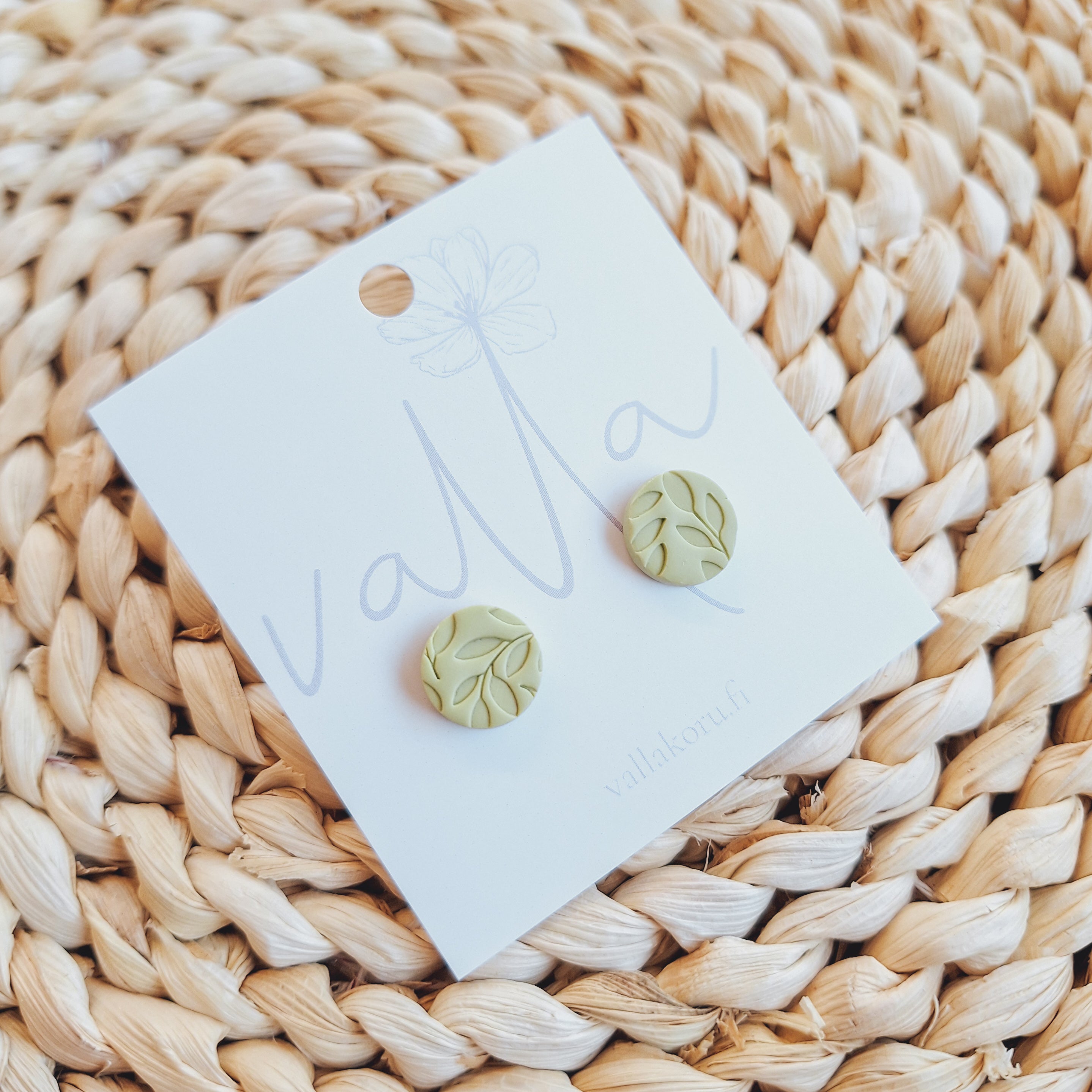 Söpöt pienet nappikorvakorut pintakuvioinnilla.