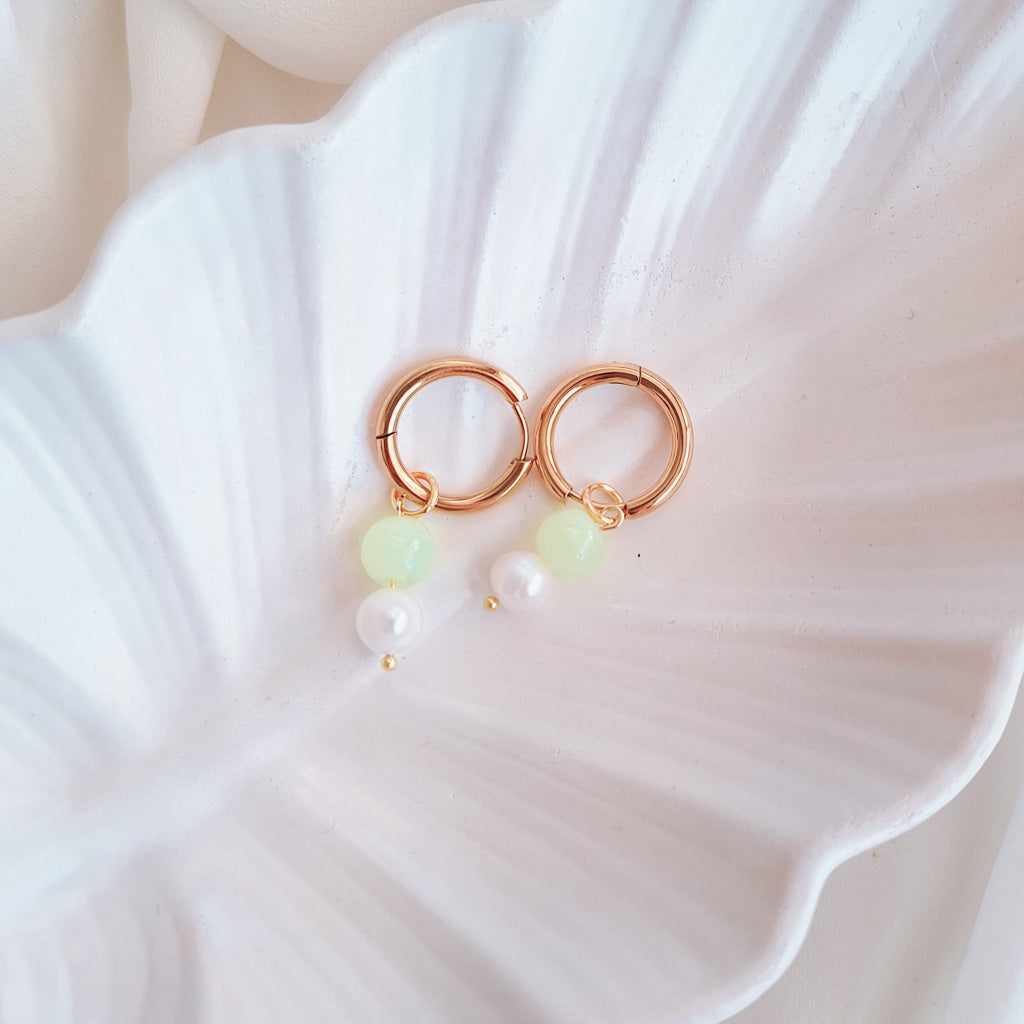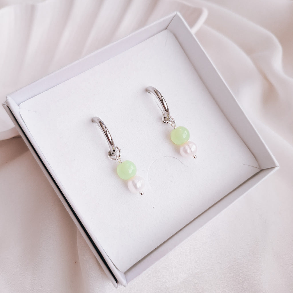 Söpöt korvakorut lasihelmellä ja aidolla makeanvedenhelmellä.