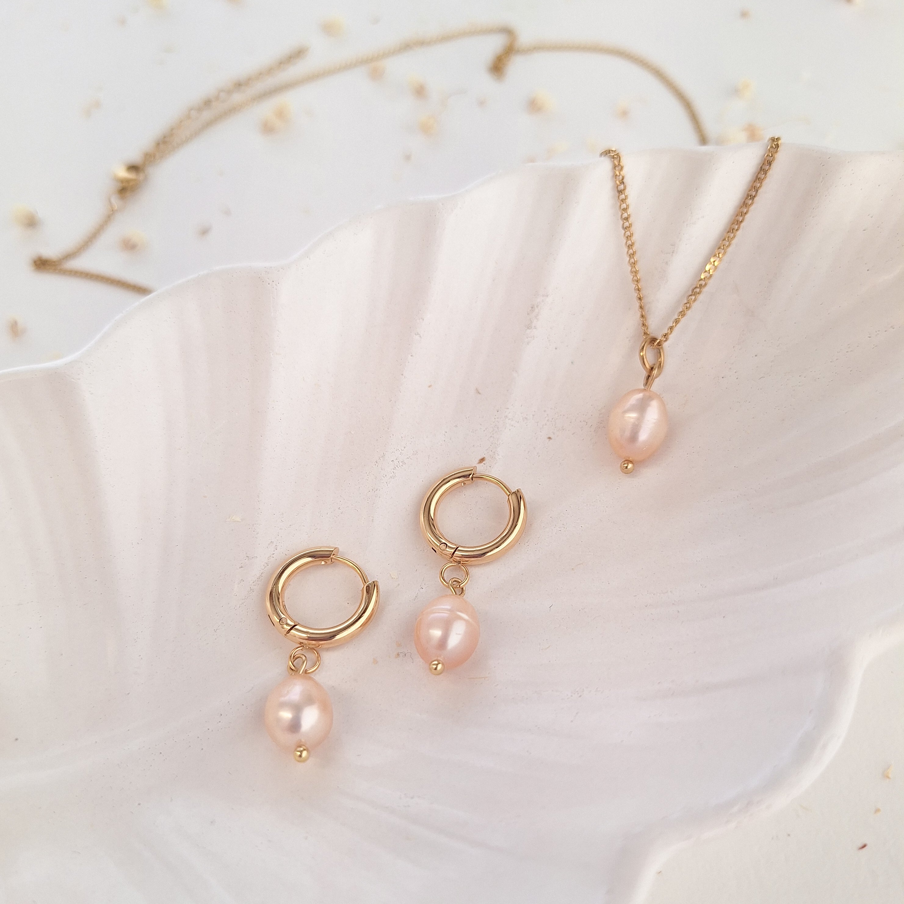 Klassisen kauniit helmikorvakorut näyttävällä makeanvedenhelmellä.