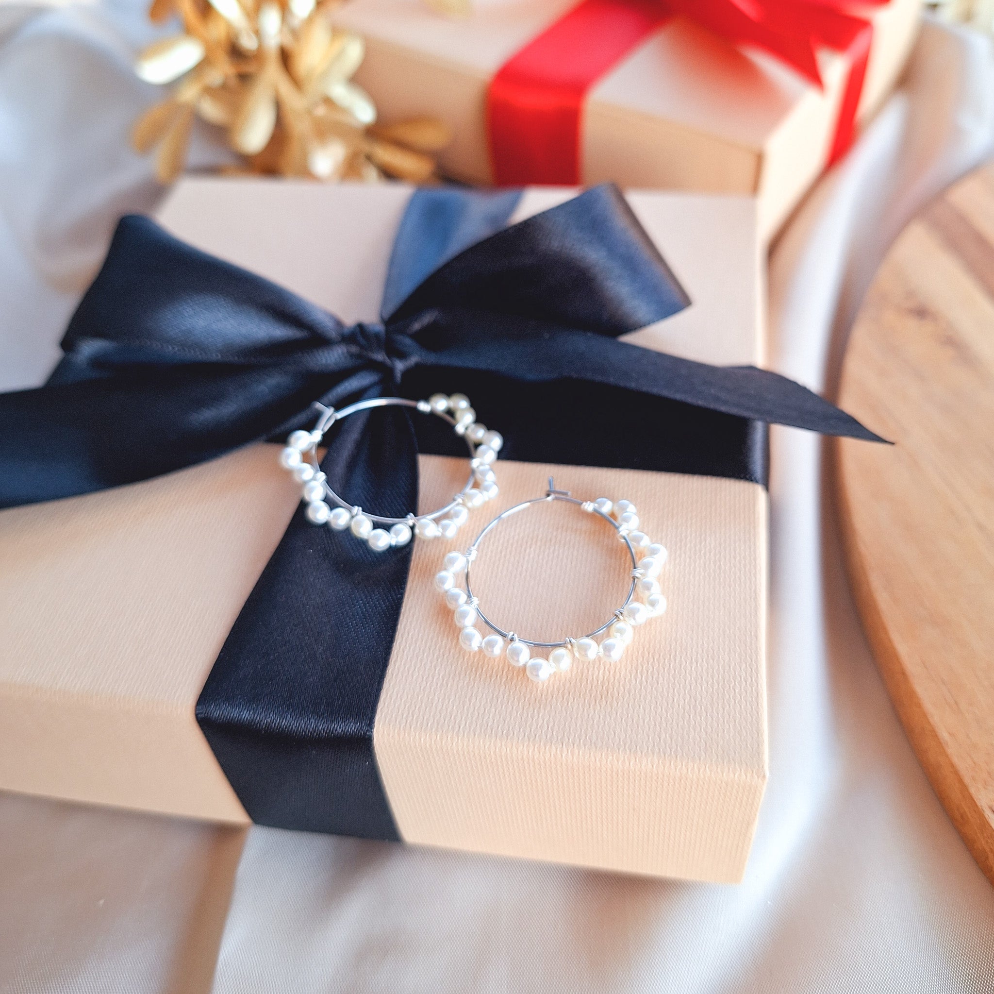 Vallan isompi korurasia kauniiseen satiininauhaan kiedottuna valmiina lahjaksi. Täydellinen myös korujen kestävään säilytykseen. Lahjarasiaan sopii 1-3 paria korvakoruja.