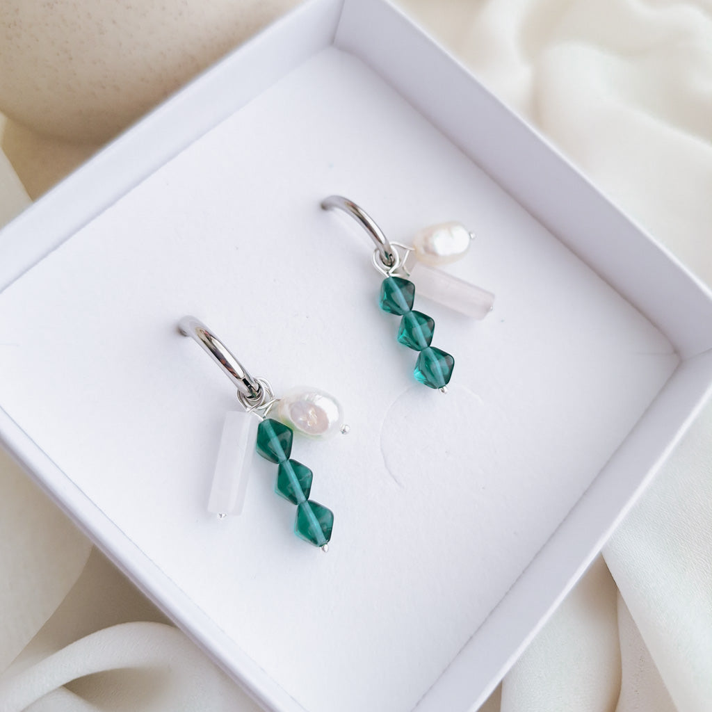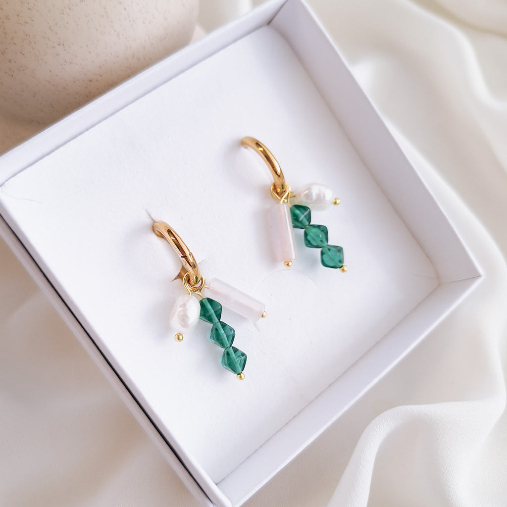 Kauniit ja monikäyttöiset Lise korvakorut sisältävät kolme eri koruriipusta. Vaihtelemalla käytössä olevia riipuksia saat korusta eri tyylisen fiiliksen mukaan, riipuksia voi pitää niin yksittäin kuin yhdessäkin!