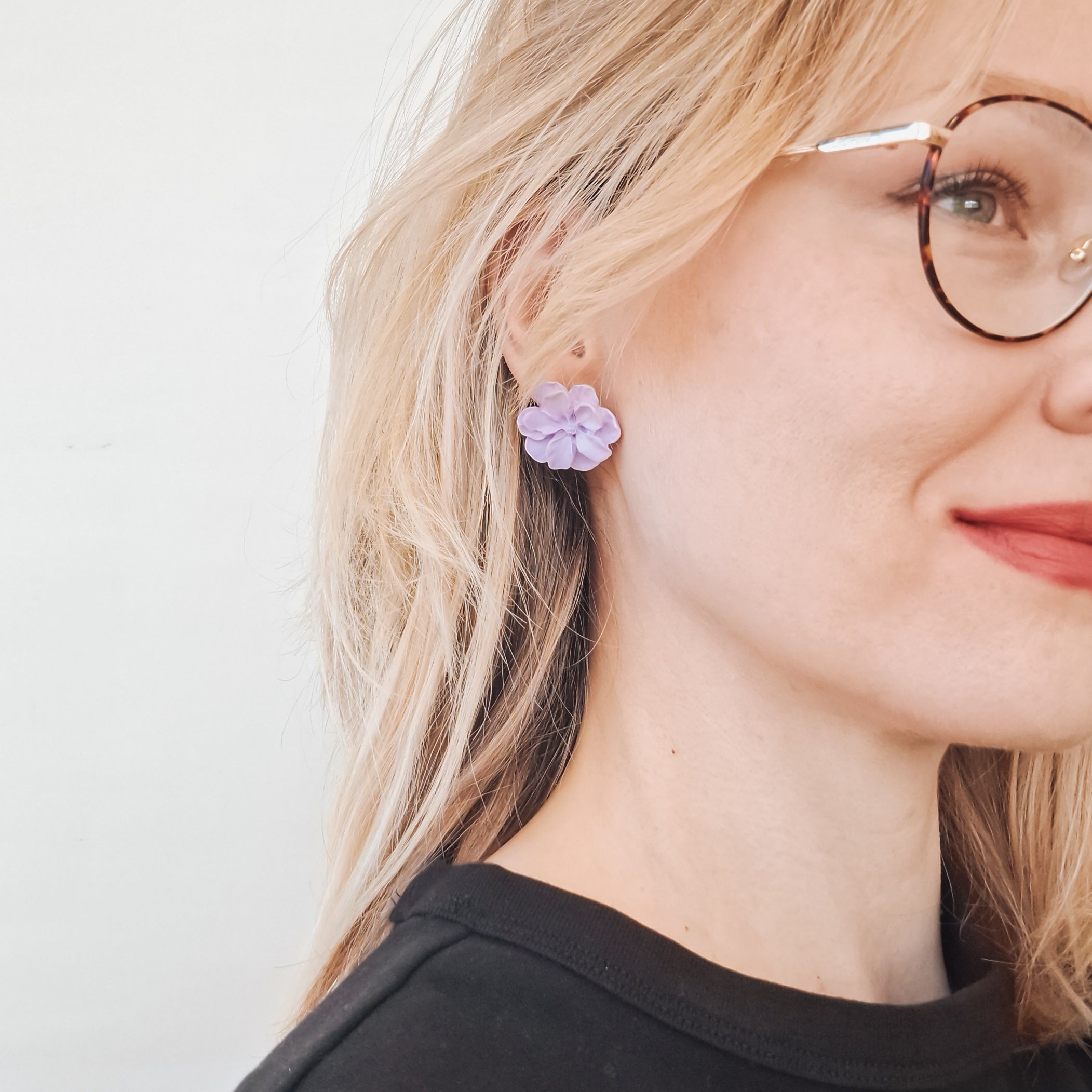 Söpöt kukkakorvikset kesän menoihin! Kukat on muotoiltu muotin avulla käsin, taustapuoli tasainen. Samaa kukkaa saatavana myös koukkukiinnityksellä.