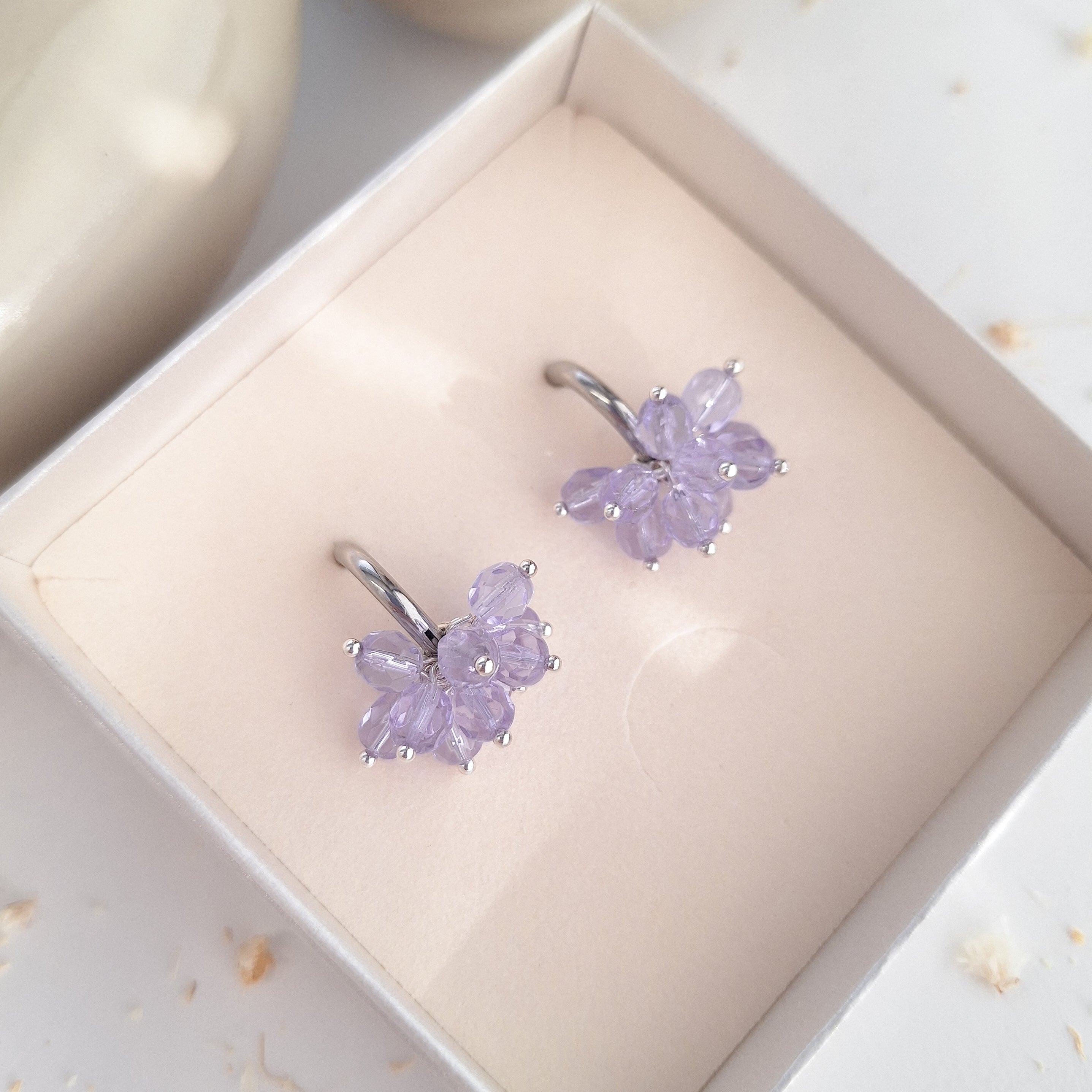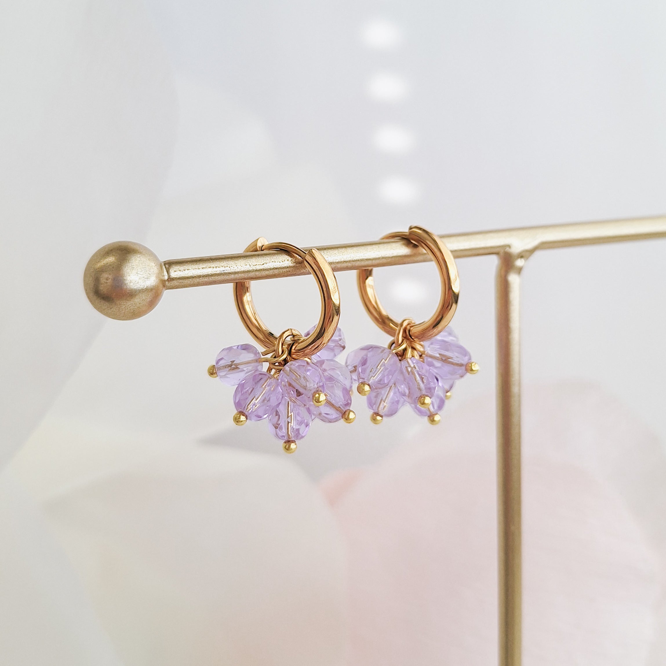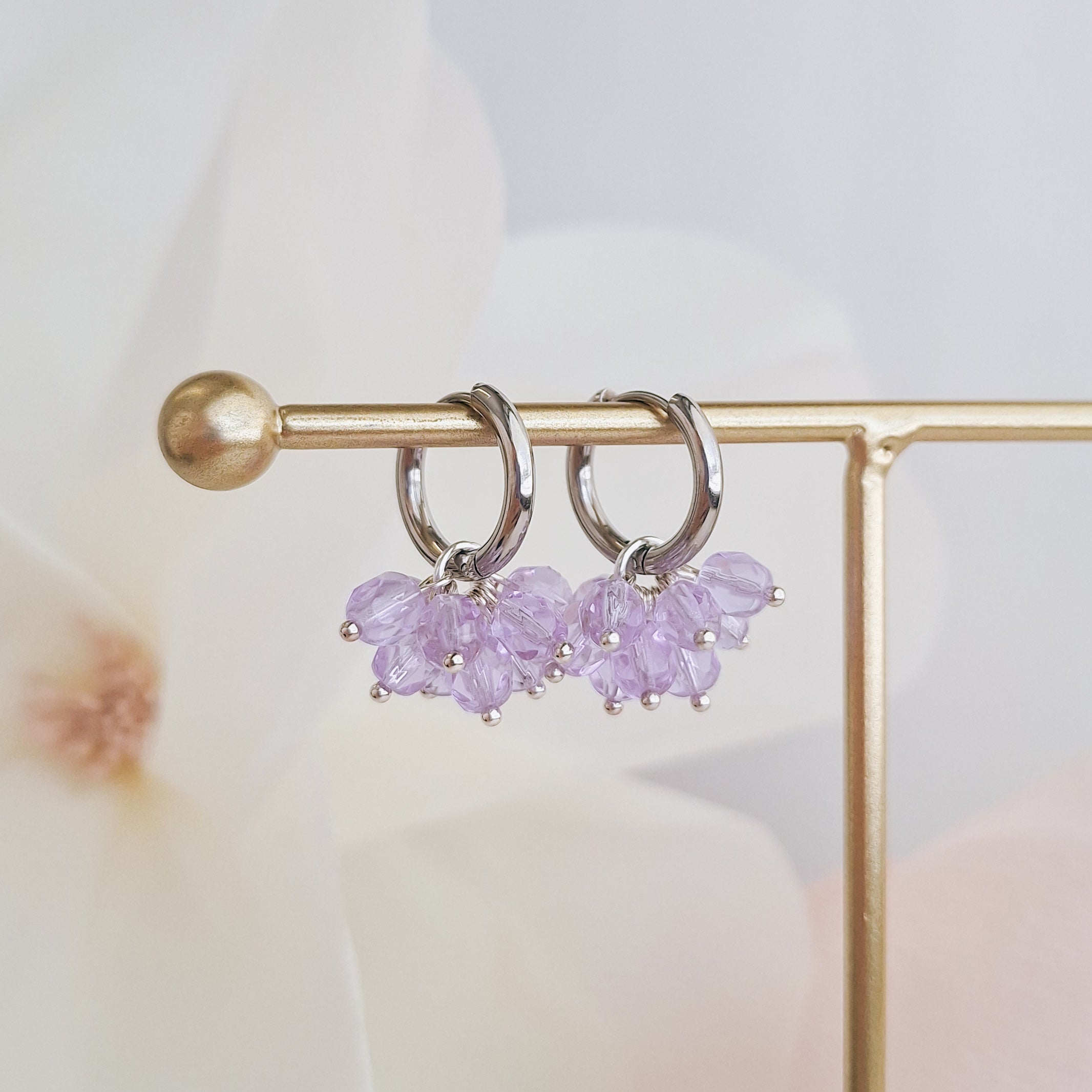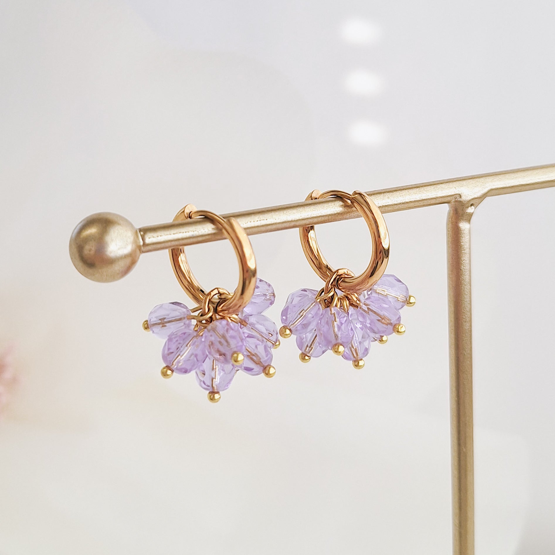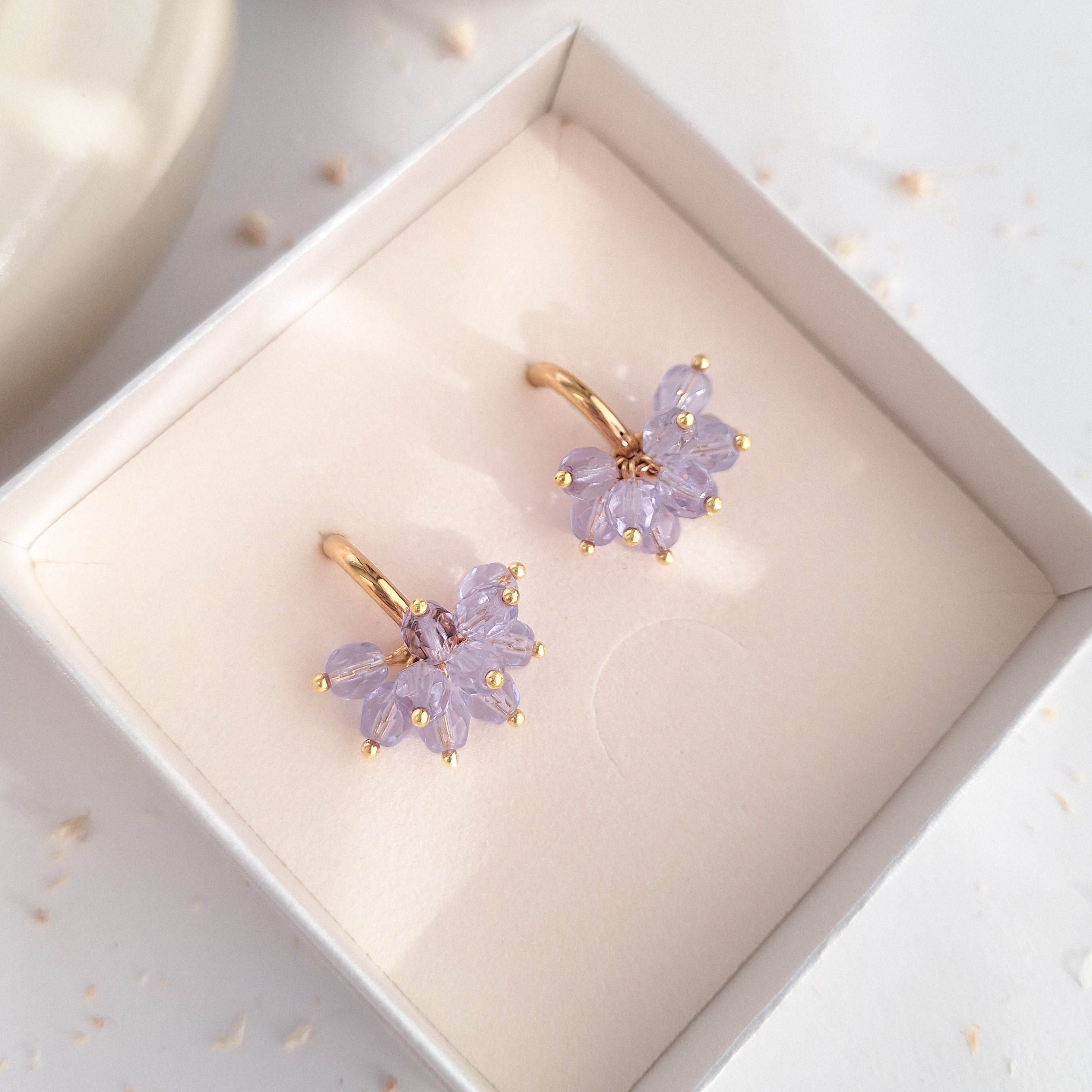 Näyttävät Safiiri korvakorut upeissa väreissä. Safiiri korvakoruissa on yhteensä 20 kaunista fasettihiottua lasihelmeä paria kohden. Täydelliset juhliin ja rohkealle myös arkeen!