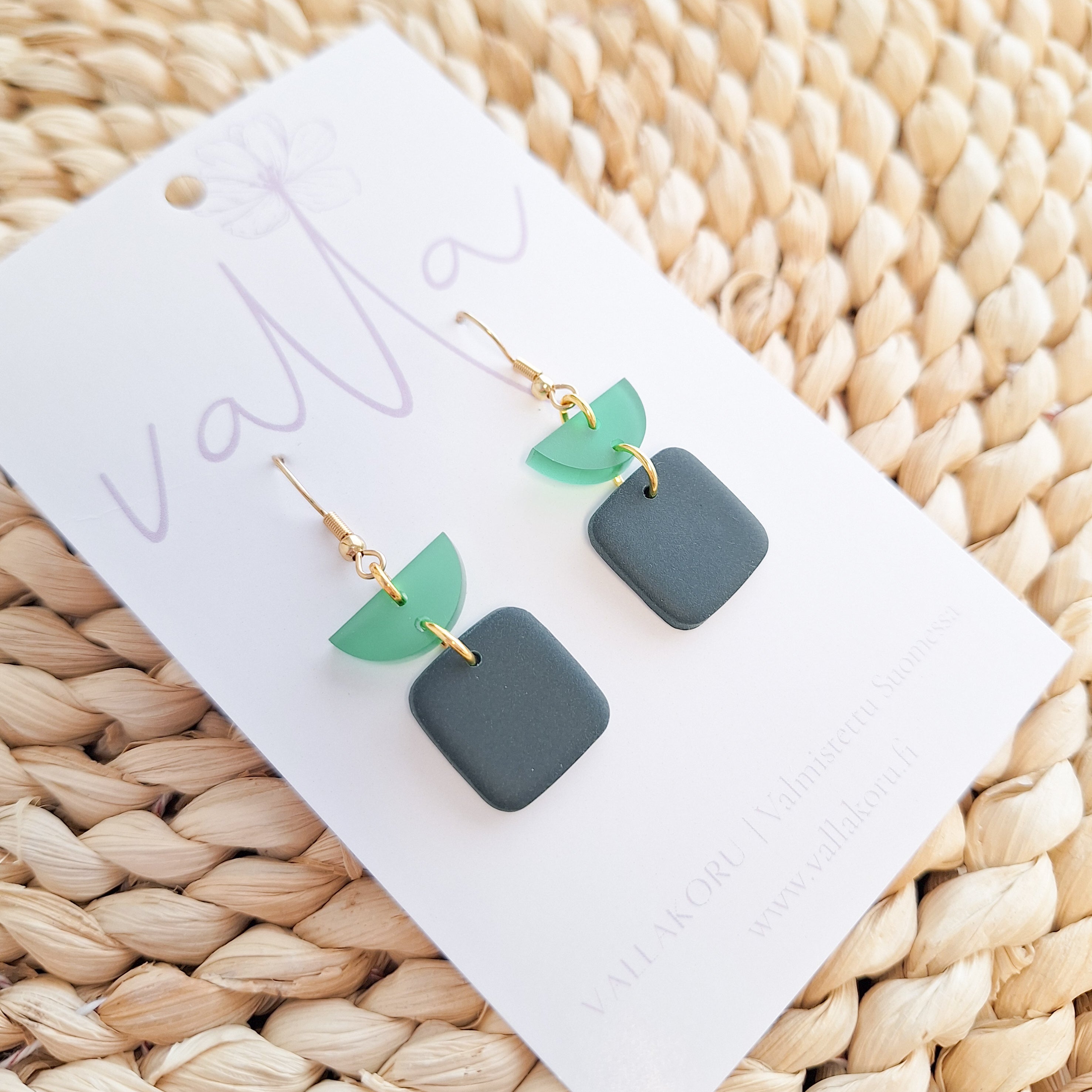 Tuote toimitetaan Vallan korttipohjalla. Mukana silikoniset korvakorutaustat.