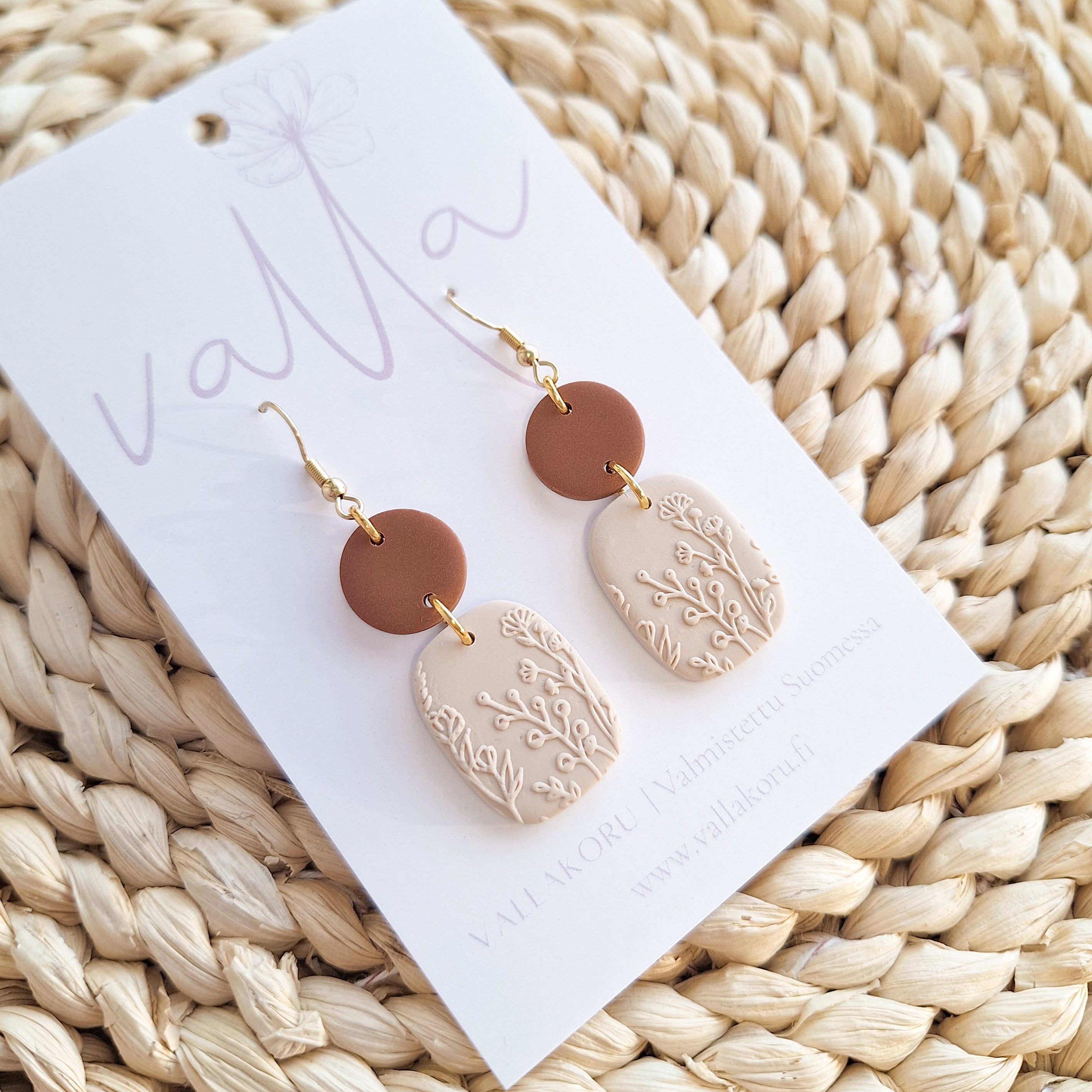 Kuvan korun korvakorukoukut ovat 18K kullattua terästä, muut osat kullattua messinkiä.