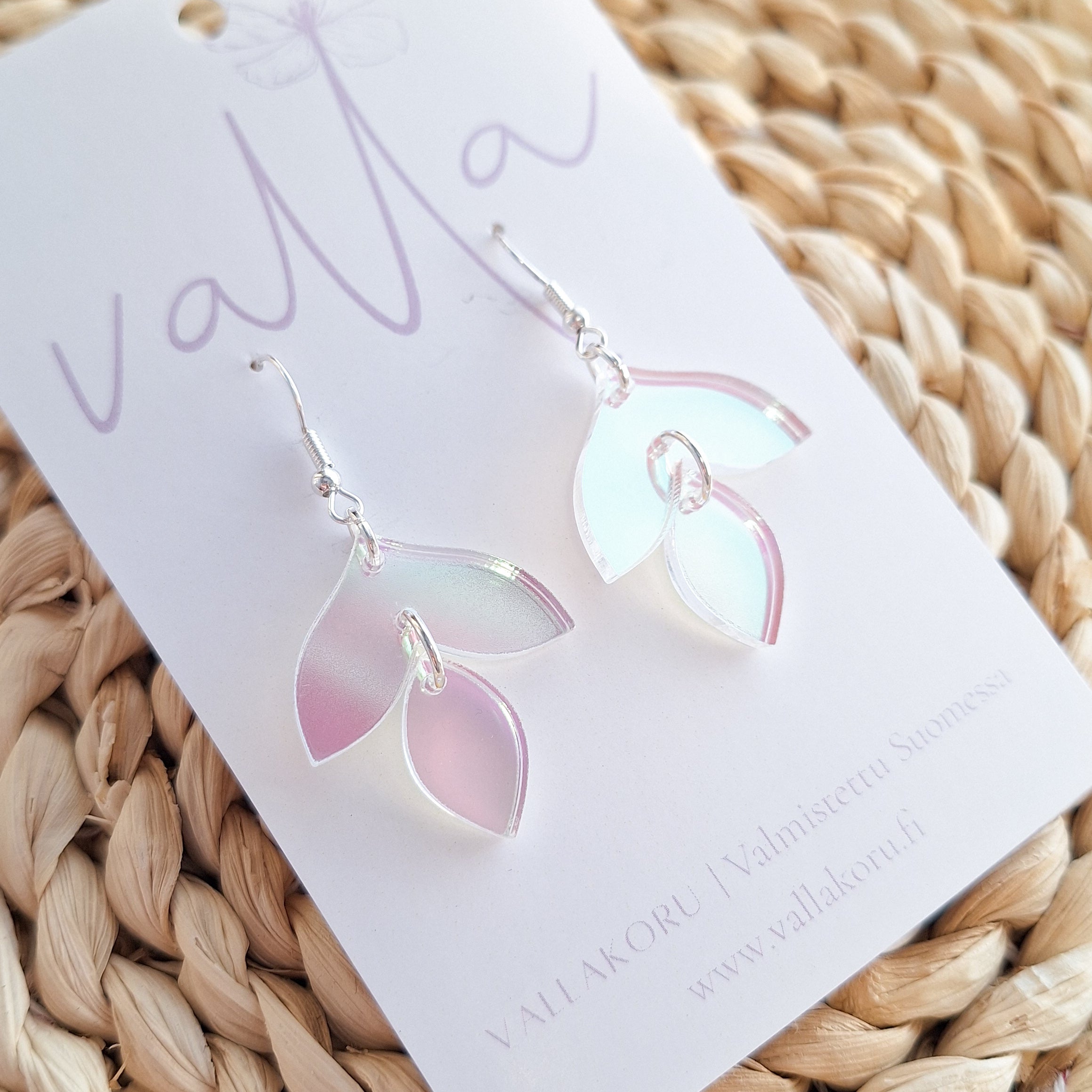 Tuote toimitetaan Vallan korttipohjalla. Mukana silikoniset korvakorutaustat.