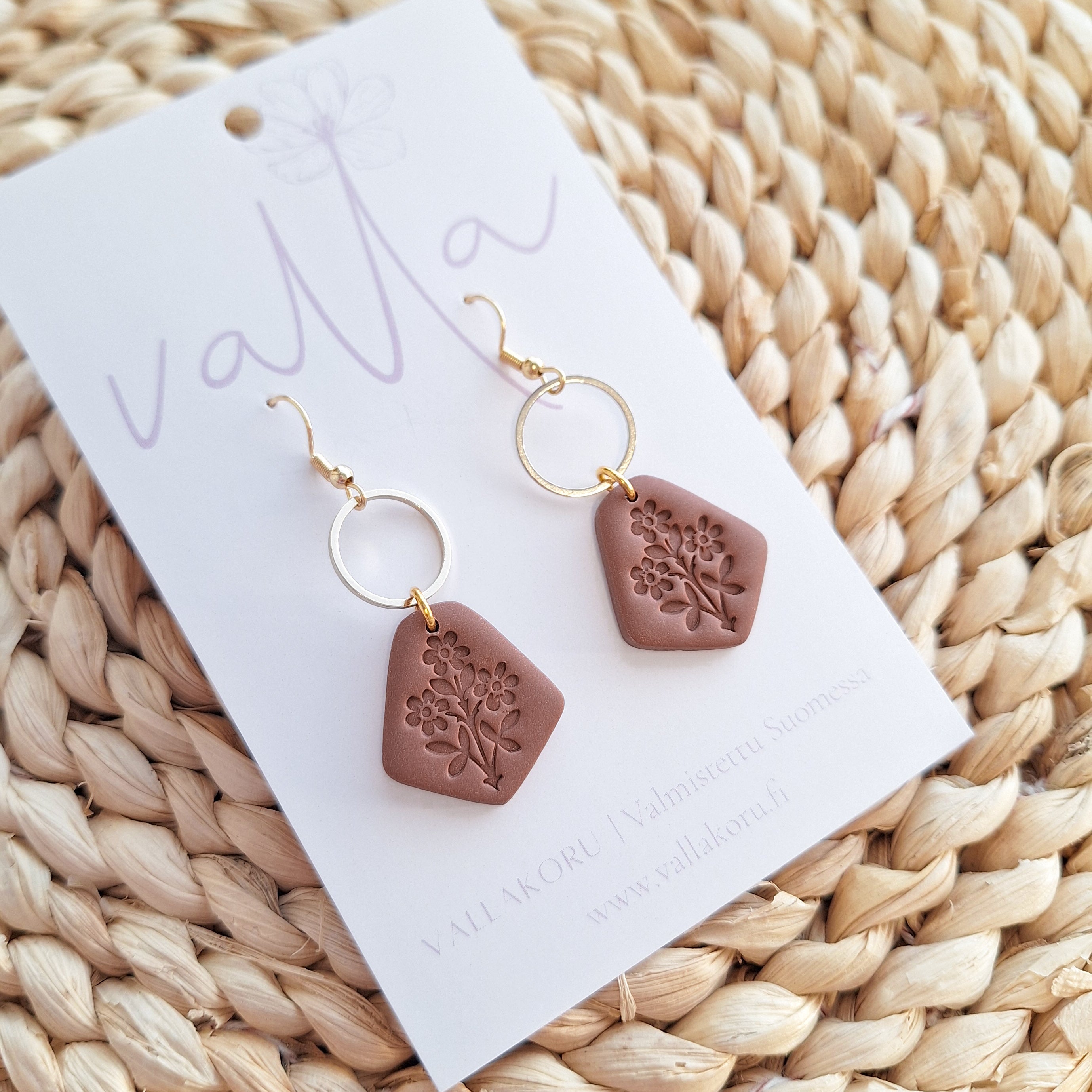 Tuote toimitetaan Vallan korttipohjalla. Mukana silikoniset korvakorutaustat.