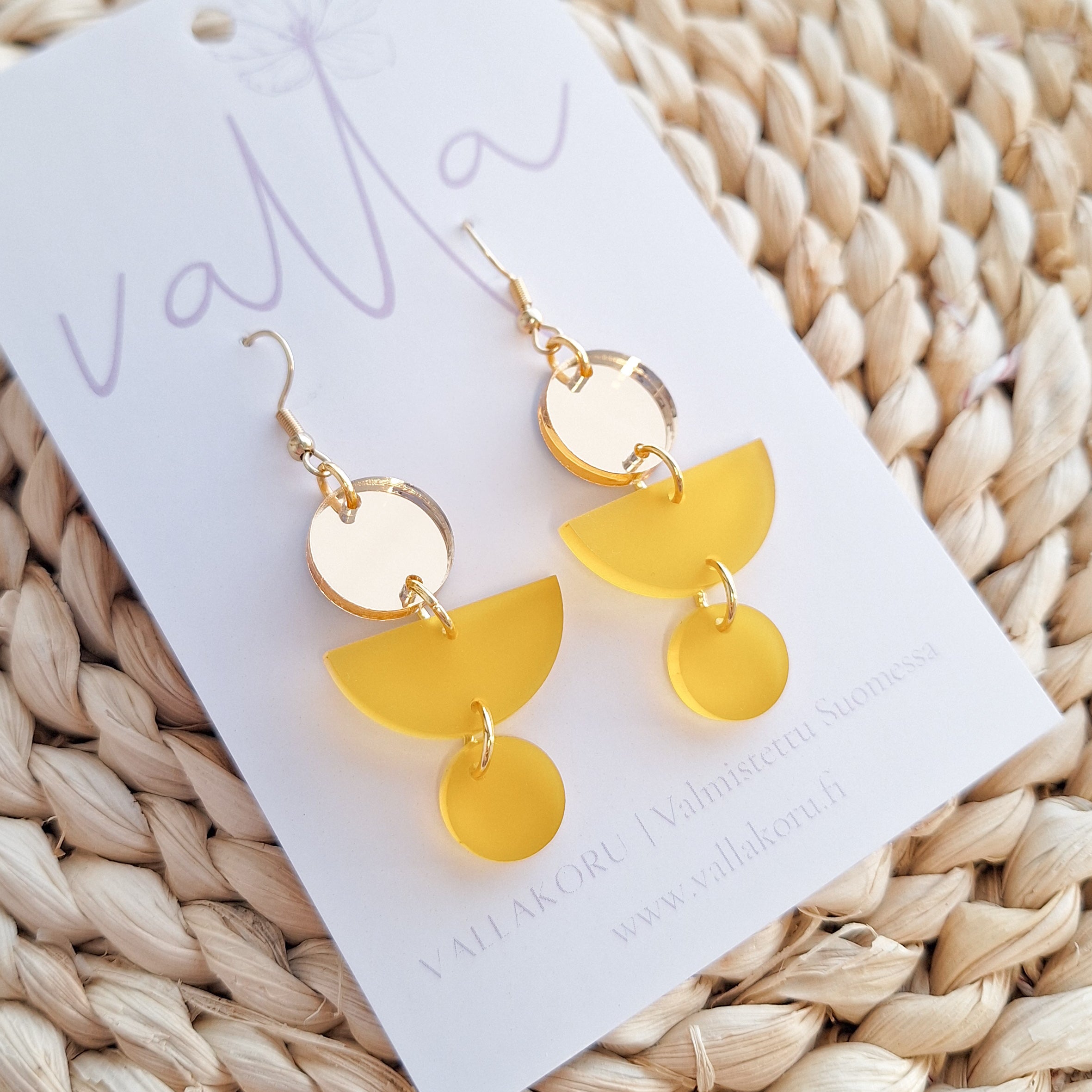Kuvan korun korvakorukoukut ovat 18K kullattua terästä, muut osat kullattua messinkiä.