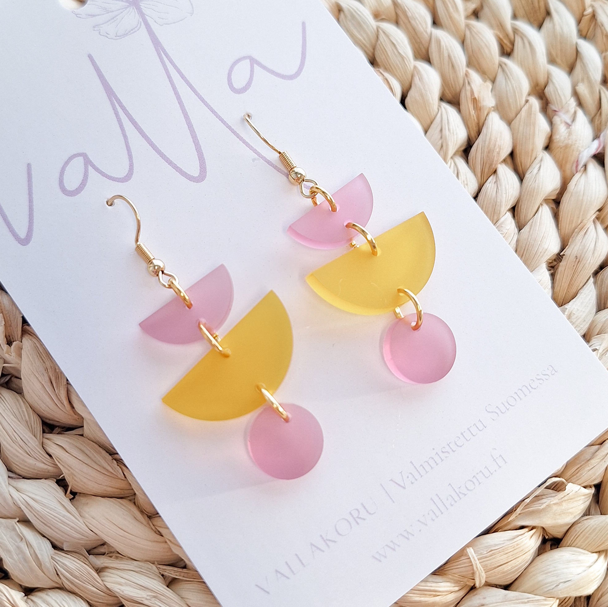 Tuote toimitetaan Vallan korttipohjalla. Mukana silikoniset korvakorutaustat.