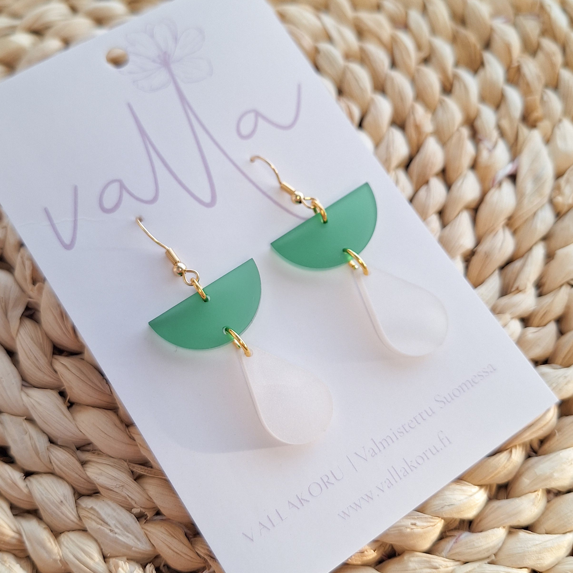 Tuote toimitetaan Vallan korttipohjalla. Mukana silikoniset korvakorutaustat.