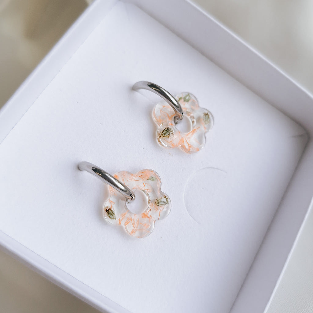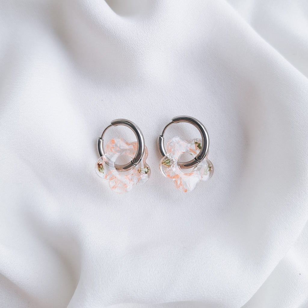 Upeat kuivakukkakorut rengaskiinnityksellä. Sisällä aitoja kuivattuja kukkia, jokainen pari on uniikki! Saatavilla vain yksi pari.