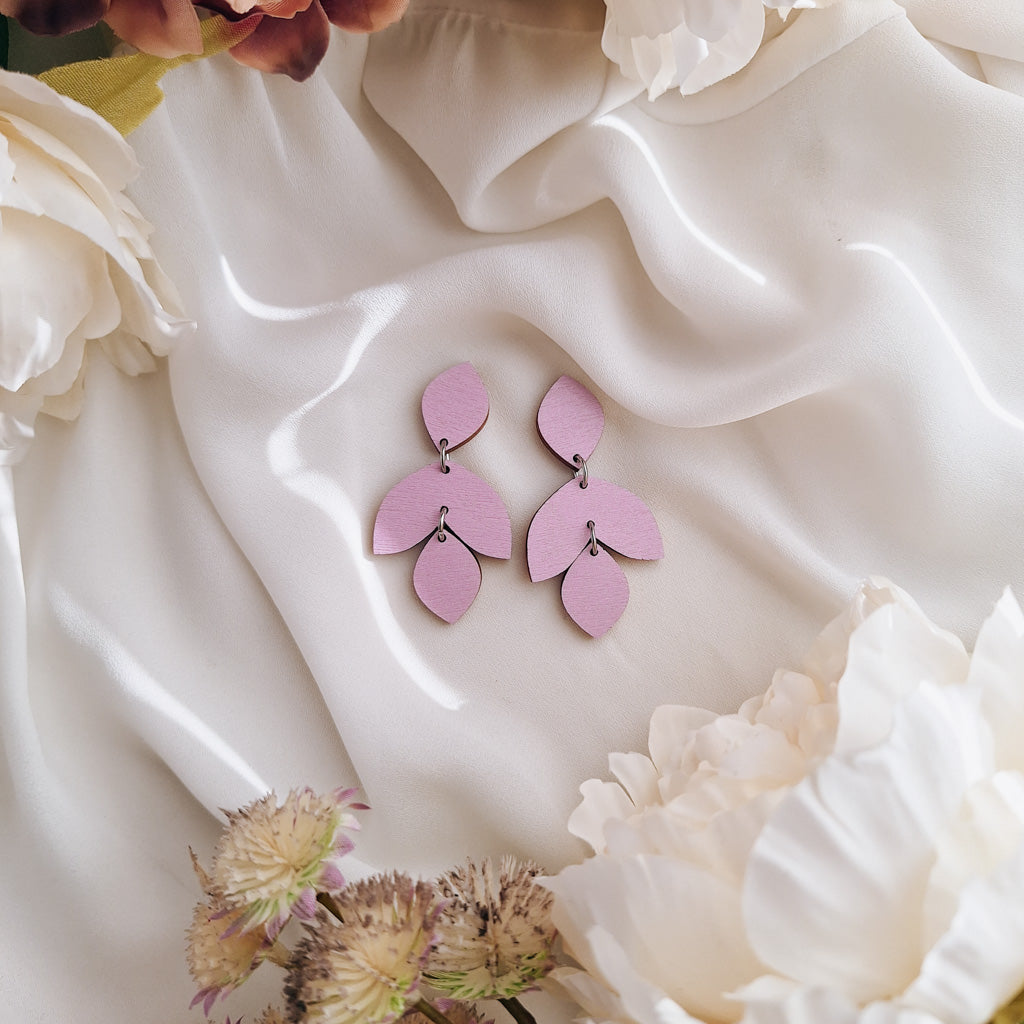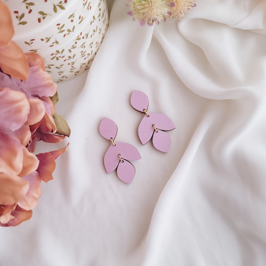 Kauniit, kolmiosaiset ja lehdenmuotoiset korvakorut.